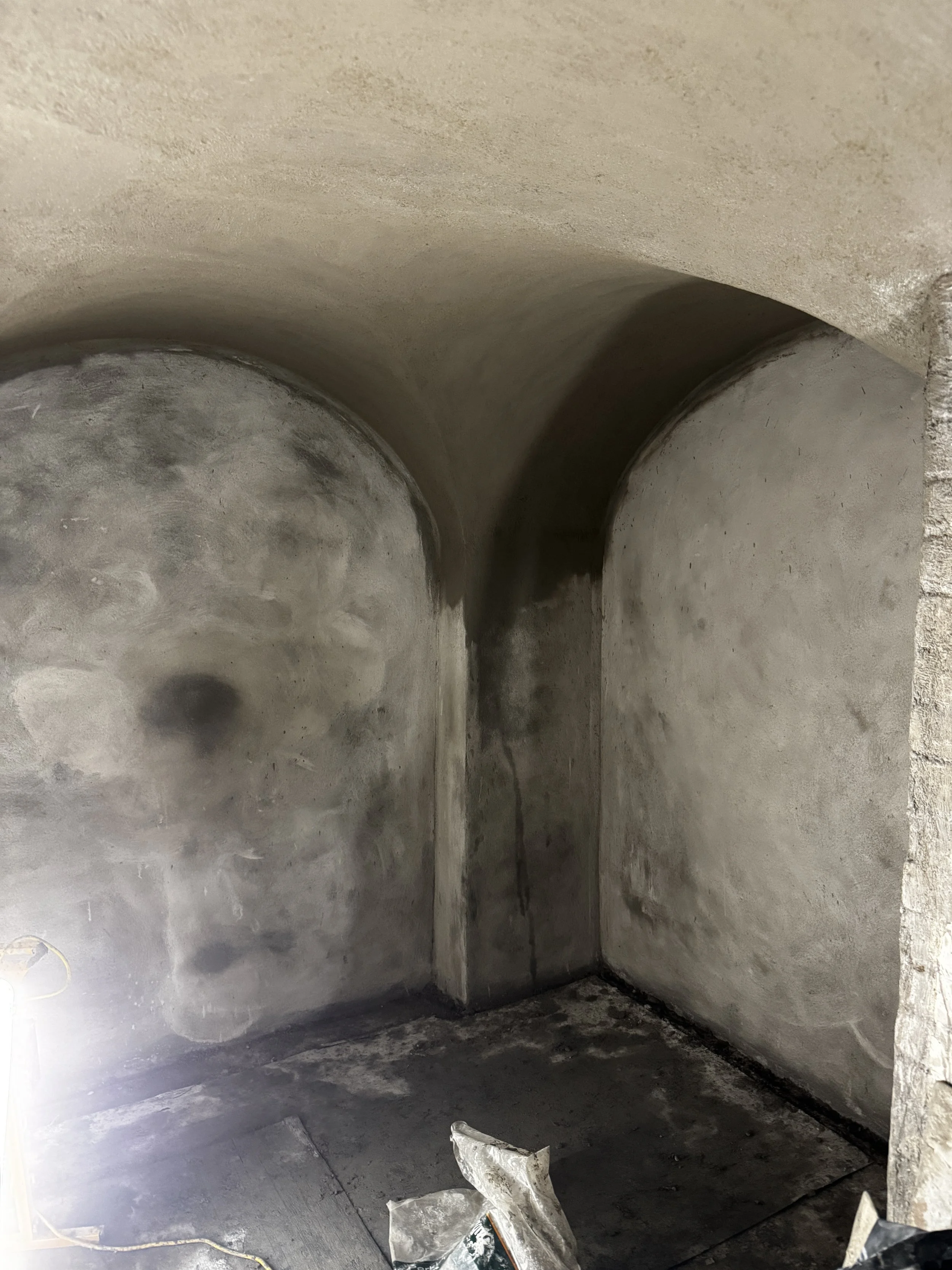 Our task was to provide extensive waterproofing to five basement vaults within the building. Upon inspection, we found the existing waterproofing system on the walls and soffits had failed, as the waterproof render had debonded from the underlying brickwork.